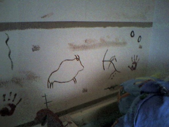 Mein großer Sohn mag sehr gerne alles was mit Steinzeit, Dinosaurier und Urzeitliches zu tun hat!! Wir haben uns gedacht:"Dinos hat ja jeder!" und so ist die Höhlenmalerei entstanden!! Wir finden es ist ein gelungenes Kunstwerk geworden!!!