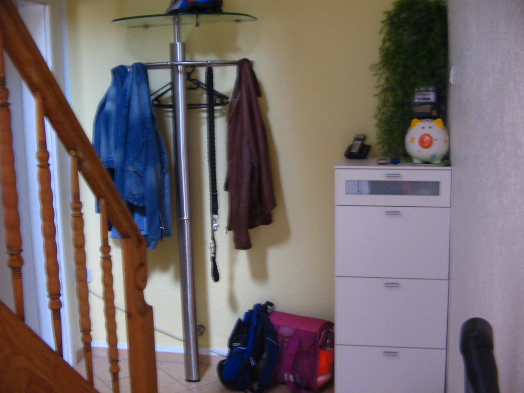 ohje was mach ich bloß mit dem Flu? seufz Hinter dem grünen Kunststoffkraut ist ein alter Stromzähler... sind am überlegen ob wir uns einen schönen Schrank dort hin bauen und so auch den Zähler zu verstecken . Bei 3,70 Höhe viiiiiel Stauraum :))
