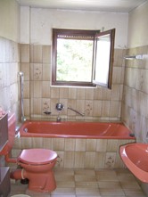 Auch die orangene Badewanne wurde von orange auf weiß getunt (Badewannenlack)....schön für was es nicht alles Farbe gibt ;-).