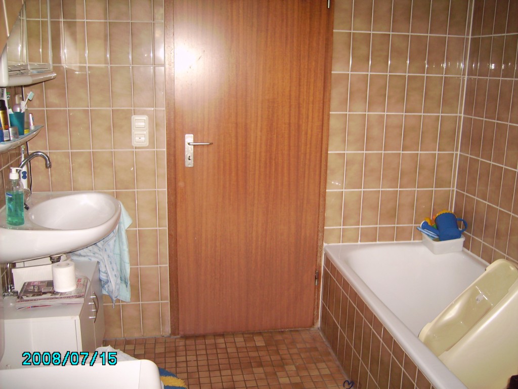 Das Badezimmer sieht so aus wie es aussieht. Schrecklich.Diese Brauntöne sehen einfach nicht gut aus. Ich werde es aber in der nächsten Zeit Fliesen. Wie genau, das weiß ich noch nicht wird aber bestimmt super aussehen.