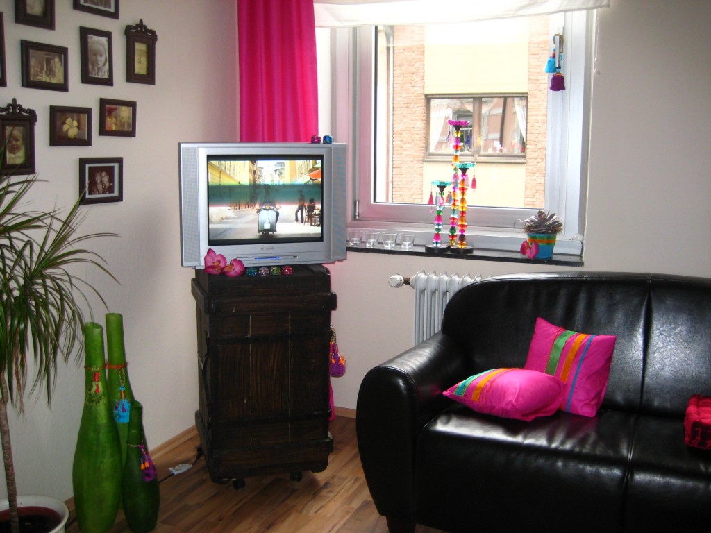 der couchtisch ist genau wie mein fernsehtisch und der pflanzenhocker ehemalige weinkisten, welche ich mit brauner holzfarbe gestrichen habe!