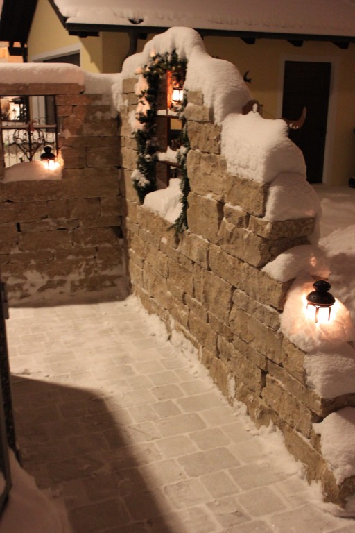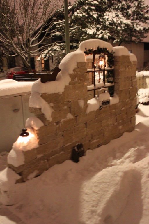 Leider ist direkt an der Gartenmauer eine große Strassenlaterne, deshalb ist das Bild so hell. Eigentlich war es schon stockfinster, als ich die Fotos gemacht habe...