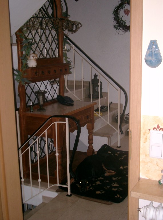 19.645Hier unser Flur und der Blick von der Diele ins Treppenhaus. An die Stelle des Kinderwagens kommt noch ein alter Bauernschrank den ich geerbt habe....der ist aber leider immer noch beim Restaurator......