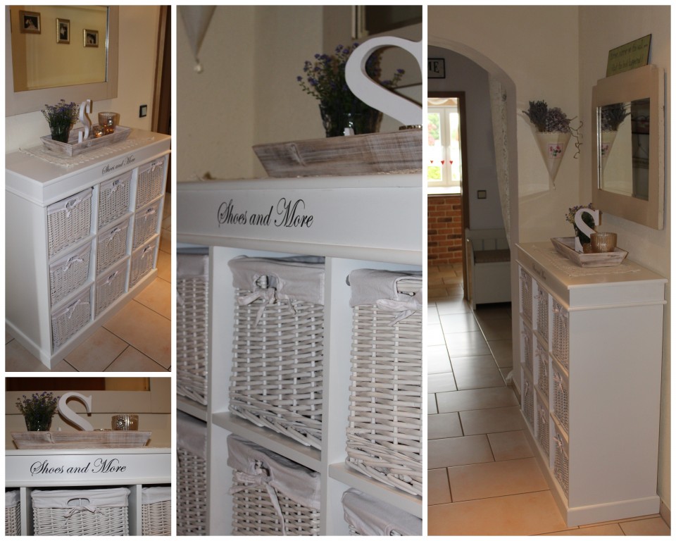 Dahinter habe ich unsere Regenschirme versteckt. Außerdem soll noch ein Regalboden am oberen Ende der Tür angebracht werden. Bin schon am überlegen, was ich da schönes dekorieren könnte. Vielleicht finde ich ein paar alte Hutschachteln...