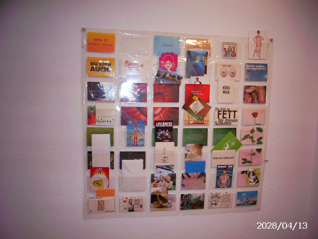 Auf diese altbekannte Wand schaut man als erstes, wenn man die Türe rein kommt herein. Die wichtigste Karte ist wohl die blaue in der ersten Reihe.