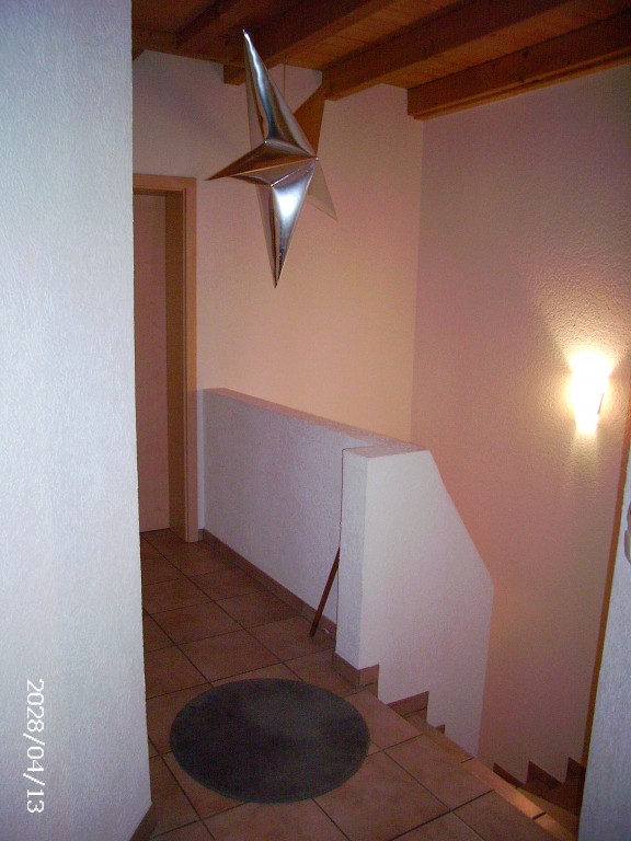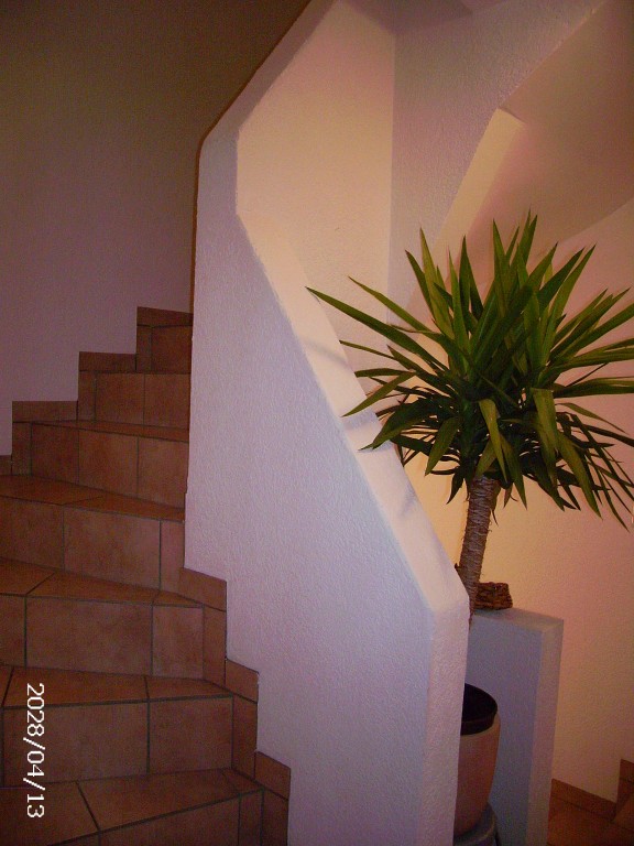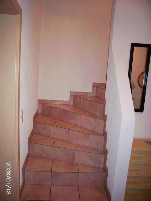 Da es ein Hanghaus ist muß man durch den Keller rein. Das ist die erste Treppe nach oben. Also wenn man eins in diesem Haus bleibt ist es fit, denn Treppen wo das Auge schaut.