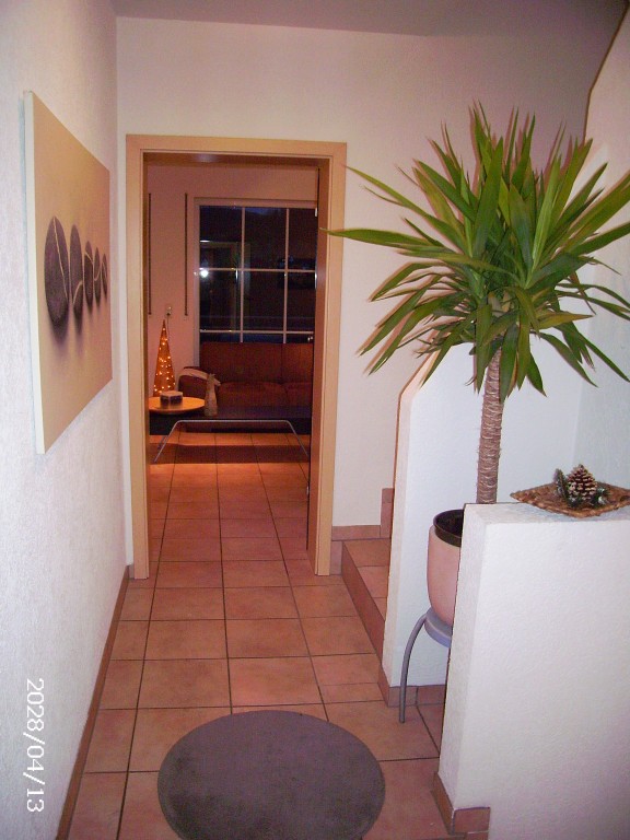 Wie gesagt durch den Keller rein. Die Türe auf die man da sieht ist eine der Kellertüren. Ich finde es fällt nicht auf. An sonsten habe ich jetzt im Rücken den Partyrau bzw. das 2. Wohnzimmer oder Büro wie man den Raum auch immer nennen will.
