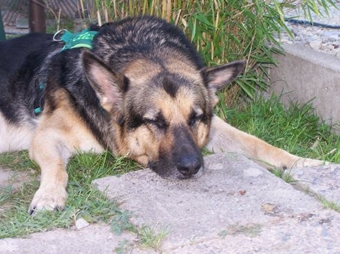 Leider hat er im Moment ziemlich Pech und sich sein Kreuzband angerissen! Wir hoffen dass es von alleine heilt denn eine Operation ist bei seinen "Baustellen" nicht so toll! Seit knapp drei Wochen tragen wir 34 kg in der Gegend rum und endlich fängt er wieder langsam an zu belasten! Er ist der tapferste Wauzi den ich kenne und durch nichts unterzukriegen!