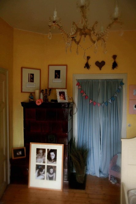 Das warme gelb und die hellblauen Gardinen im Vichymuster gibt dem gesamten Zimmer eine herrliche mediterane Aura, er hat durch seine bodenlange Balkontür ein ganz besonders weiches Licht. PS: Es wird hier nicht wirklich geschlafen:-)