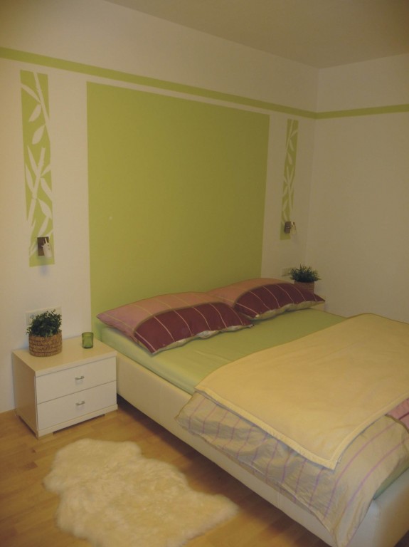 Grün wirkt auf mich sehr ausgleichend und beruhigend und verbinde ich mit Natur und Erholung. Gemeinsam mit dem Ahorn-Pakettboden ist das nun unser Wohlfühl-Schlafzimmer geworden!