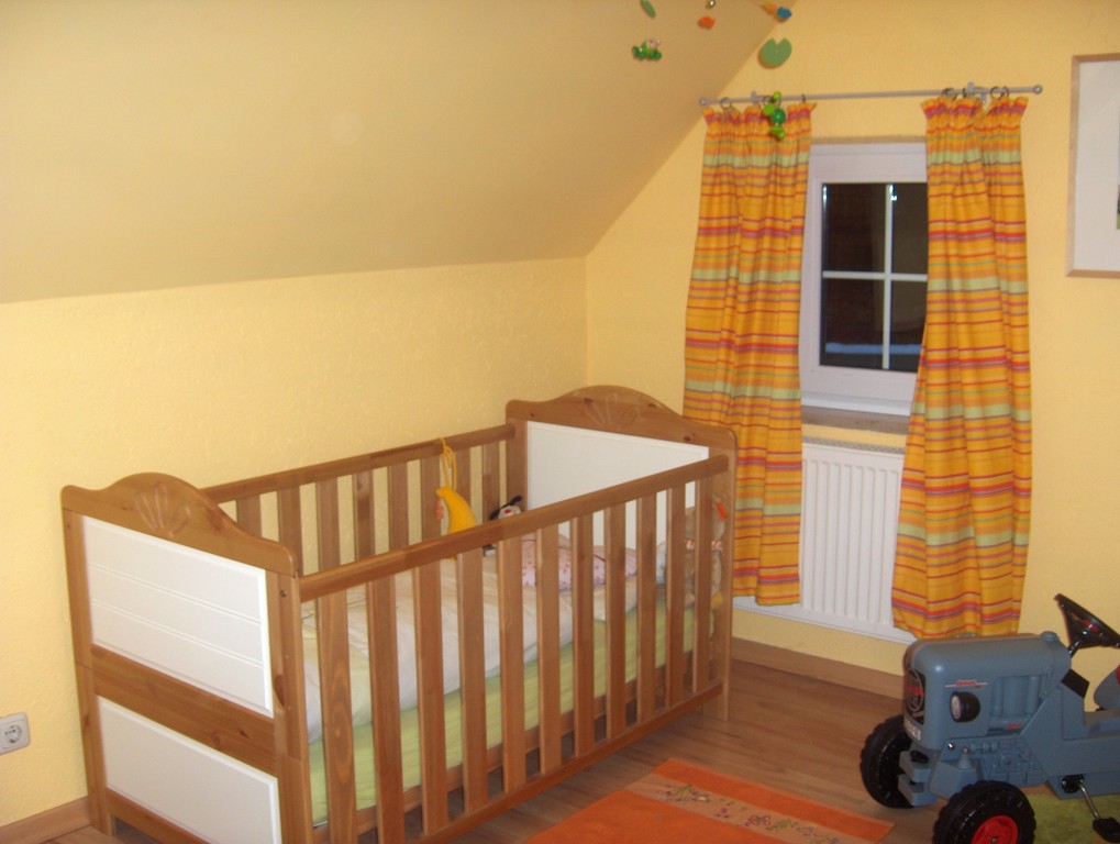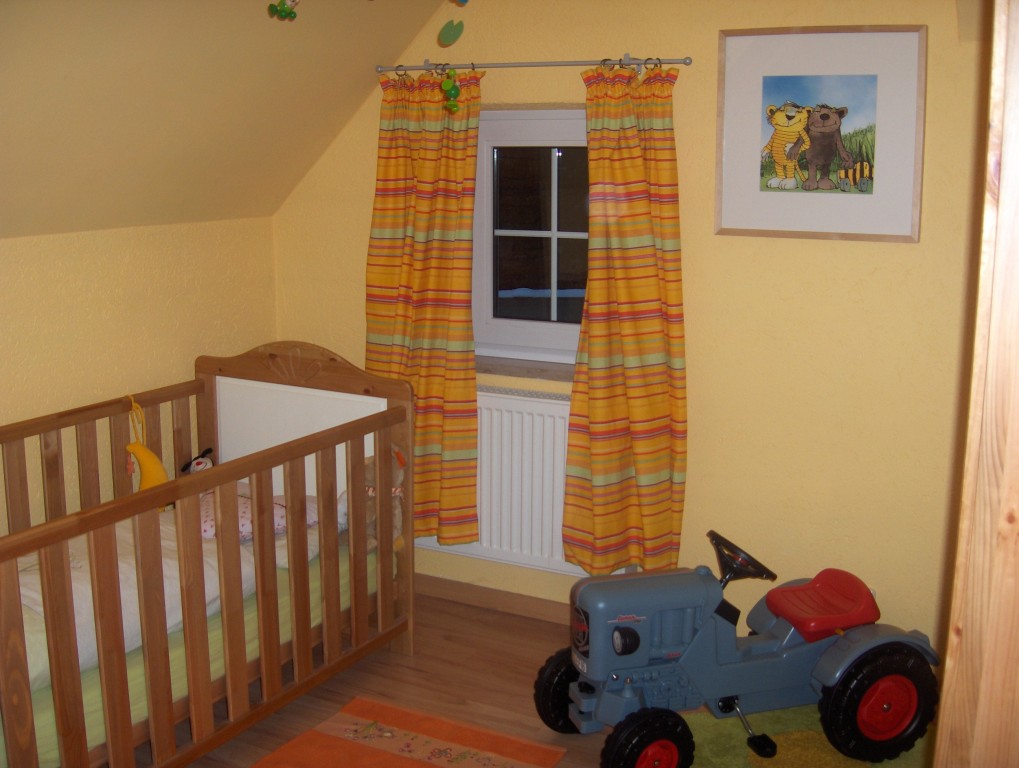 Zur Zeit ist das Kinderzimmer noch in gelb/orange gehalten. Eine Umgestaltung ist aber schon geplant