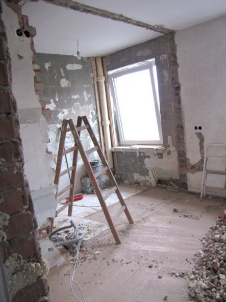Mir war es zu klein, daher mußte die Wanne und die Wand raus. Es wird zwar nur etwas größer aber was muß, das muß :-).