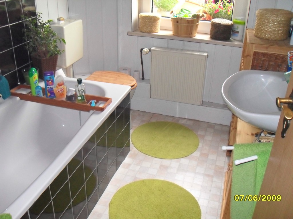 Bad heute mal in Himbeer, die Badematte ist auch Mikrofaser, aber so dünn wie ein Handtuch, werde ich wieder zurückschicken, denke, ich kaufe zu den Handtüchern eine Bambus - Badematte!