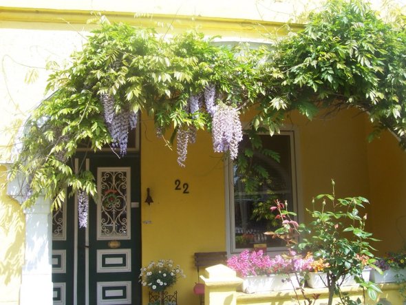 Das war noch der Hund von den alten Besitzern. Hier fällt das fast antike schmiedeeiserne Tor aber auch auf. Das habe ich inzwischen grün und weiss gestrichen.