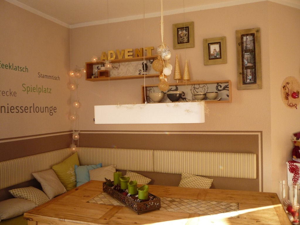 19.676Unsere Sitzecke für gemütliche Stunden. Ein frisches Grün bringt den Frühling. Die orangenen Stühle, ein Relikt aus meiner Studentenzeit, wurden durch modernere Hocker ersetzt.