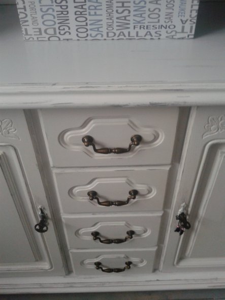 LEIDER konnte ich nur die Griffe der Schubladen abmachen, alle anderen Metallteile sind fest verankert. Evtl hätte ich die Schlösser mit einem ganz feinen Pinsel ummalen können damit ich nicht drüber komme, aber ich persönlich finde es optisch überhaupt nicht schlimm.