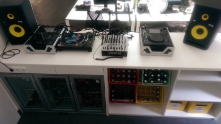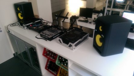 Ich bin ein absoluter Musik-Fan und hab nach Möglichkeiten gesucht, um mein DJ-Pult und das Equipment optisch ansprechend in meinem Büro unter zu bringen. Mir war dabei wichtig, dass das DJ-Pult nicht zu sehr im Büro dominiert und mitten im Raum steht, aber dennoch soll es ein echtes Highlight setzen. Hier meine Lösung: Ein hoher Bartresen, der genug Stauraum bildet für Turntables, Verstärker und Co. Ich habe ein super Modell in dem Online-Shop Home24 gefunden und mit Sparheld.de hab ich einen Gutschein in Höhe von 100€ gefunden und konnte beim Kauf meines Traumtresens deutlich sparen. Der bietet super viel Platz, so dass ich mir sogar noch neues Equipment zulegen konnte. Wer keinen passenden Tresen findet, kann alternativ natürlich auch einen hohen Tisch, Schrank oder Kommode nehmen; ich denke diese Möbelstücke eignen sich auch sehr gut, um die Musikanlage in Szene zu setzen. Noch ein kleiner Tipp zum Thema Kabelsalat: Die ganzen Kabel kann man mit einer Verteilerdose bündeln und dann unter den Tresen verstecken. Die Musikstation sollte auch möglichst nahe an einer Wand platziert werden, so dass sich der Klang im ganzen Raum gleichmäßig entfaltet. Solch ein DJ-Pult oder Tresen sieht nicht nur stylisch aus, sondern wertet jede Firmenparty auf.